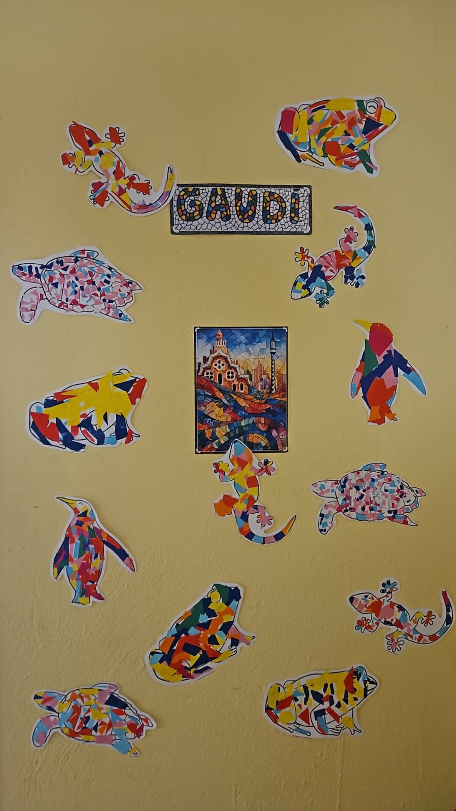 Por otro lado, desde ARTS hemos trabajado a Gaudí, viendo cómo fue su vida a través de la biografía, diferentes palabras significativas y haciendo varias creaciones con su técnica por excelencia: EL TRENCADIS, desde portalápices y puzzles cooperativos hasta espectaculares murales colaborativos con los plásticos y envoltorios de nuestros almuerzos: